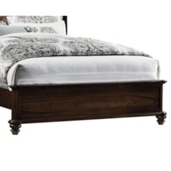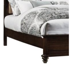 American solid Wooden Bed Dark Brown Color with Padded Headboard Cream Leather Luxury for Hotel Project.