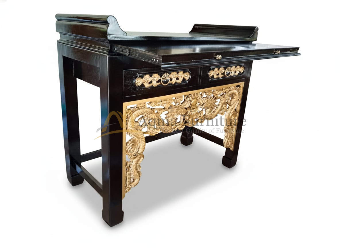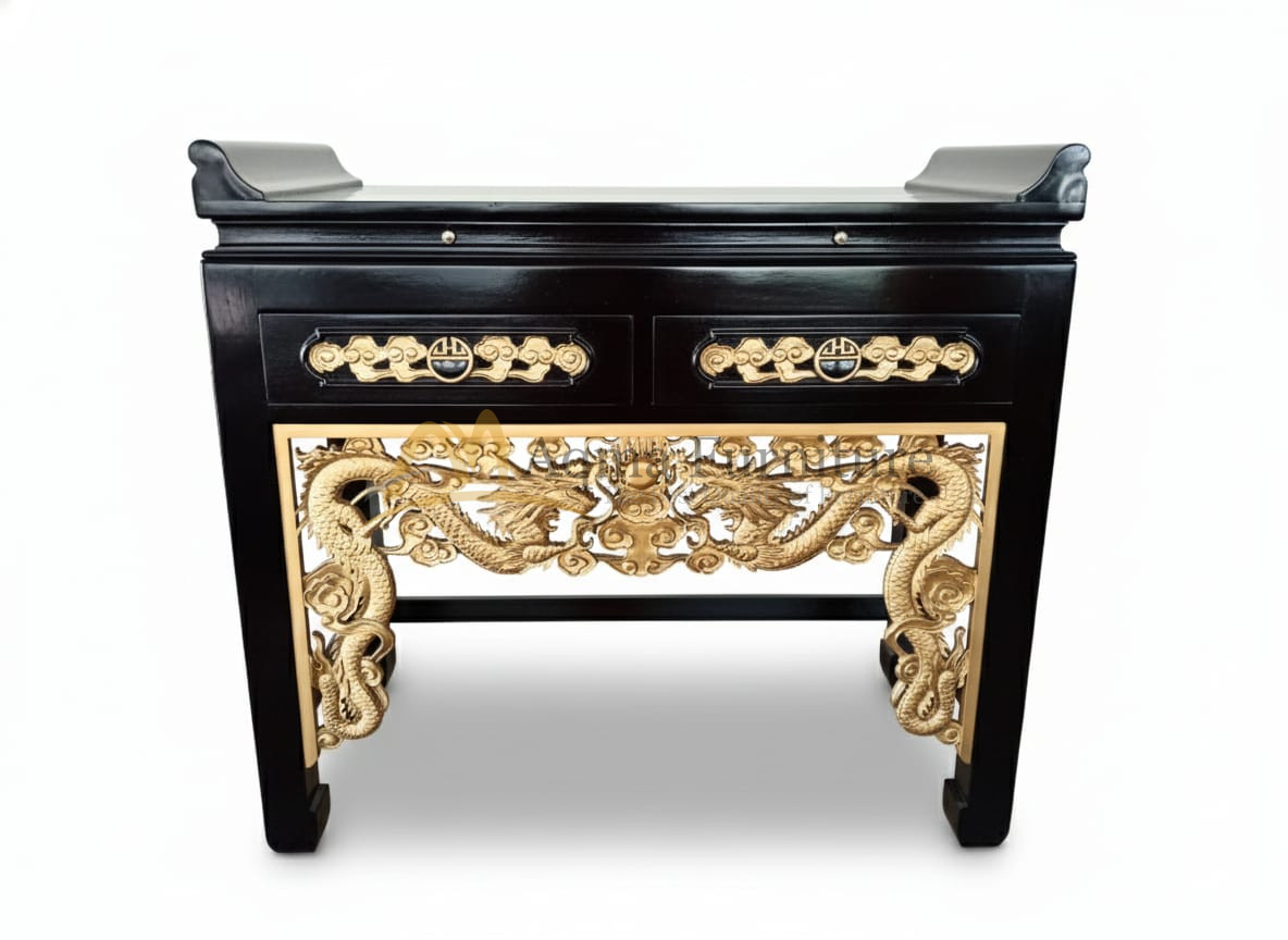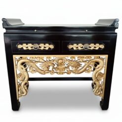 Teak Wood Altar Prayer Table and Dragon Motif Carvings Made in Indonesia – Black