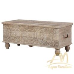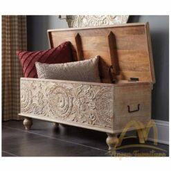 Carved Wood Storage Bench with Hinge Top Classic.