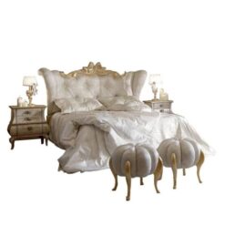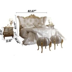 luxury bed classic residential style gold frame and white fabric solid Mahogany wood.