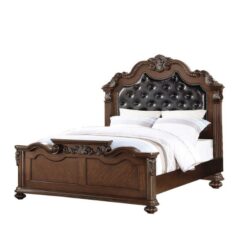 Solid Wooden Classic Bed in Brown Color with Leather Tufted.