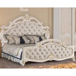 Solid wooden King Bed White Frame with Carved Luxury Classic Style Bedroom Furniture.