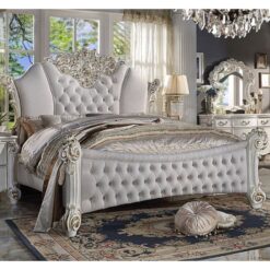 Wooden Mahogany Bed Frame with Fabric Upholstered Tufted.