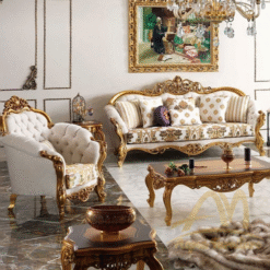 Luxury Sofa Set Gold Frame color with Carved Fabric Upholstered custom For presidential Room Hotel Project.