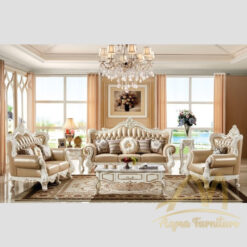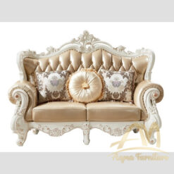 Riyadh Sofa carved set with Leather White Painted – Living room furniture – AQMA Furniture.