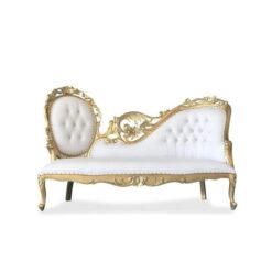Wedding sofa 2 Seaters Carved Gold Frame and white leather.