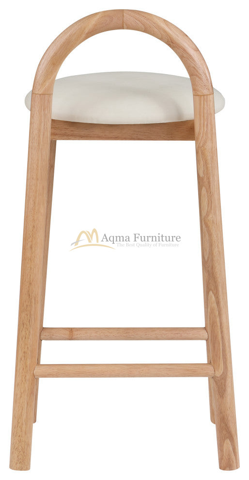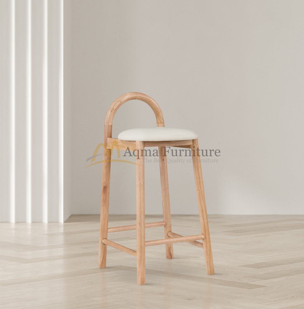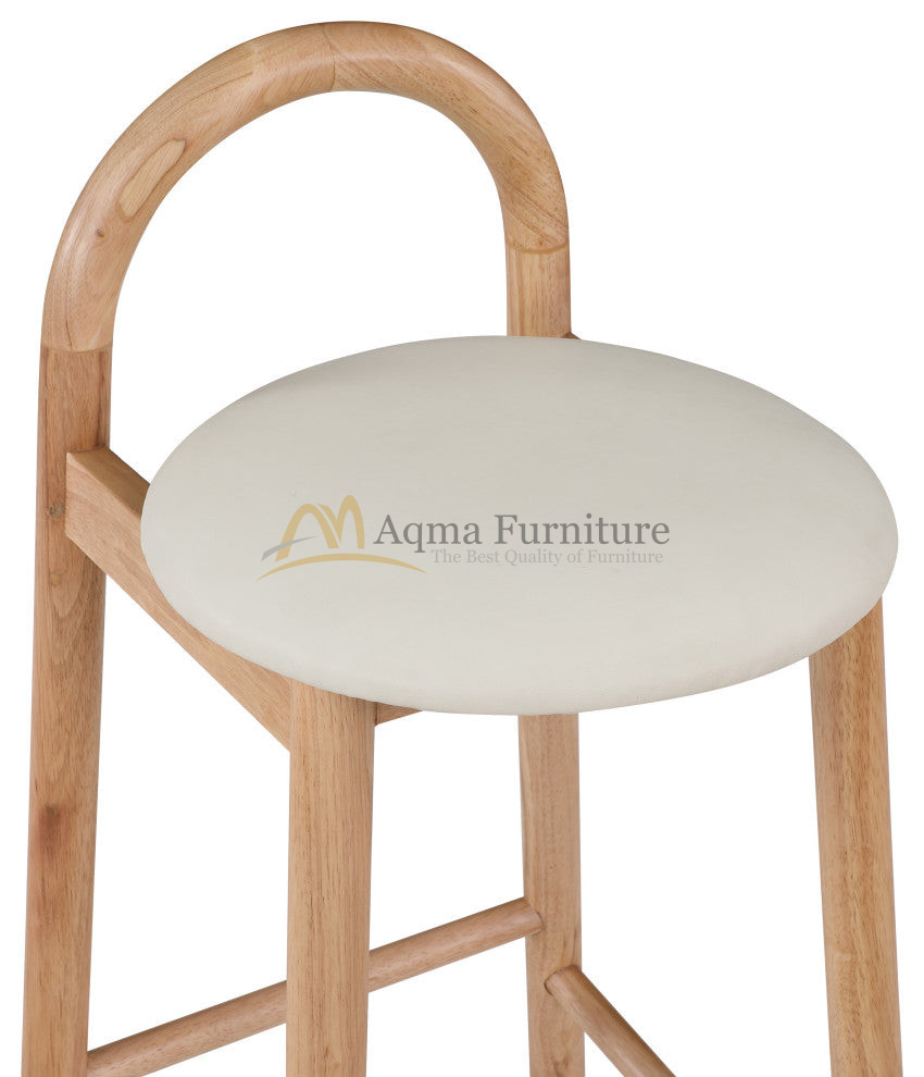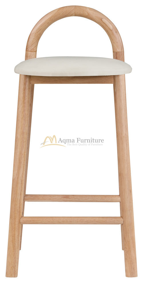 Aqma Furniture Minimal Wooden Bar Stool With Curved Backrest And Upholstered Seat features high-quality wood, crafted by professional craftsmen.
