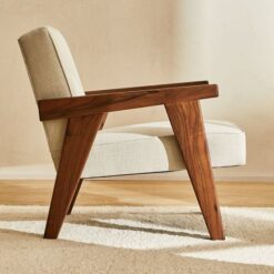 solid teak wood arm chair white cushion malibu.