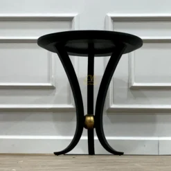 A wooden black side table is a small table typically used to place items such as lamps, books, or decorations in a room. This type of table is often made of wood, and either painted black or has a black stain applied for a darker look. The table is usually short and slim, so it can fit into tight spaces, such as next to a couch or bed in a living room. It is also often used in entryways and hallways.