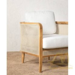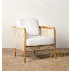 Teak Club Chair with Rattan Webbing and Cushion White Fabric – Lounge Teak Chair for Hotel Furniture.