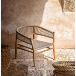Teak garden rope easy chair with armrest whitewashed Teak color – Garden Furniture.