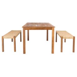 Aqma Furniture “Chicken Noodle Set” Dining Table Set with Dining Bench Outdoor features high-quality wood, crafted by professional craftsmen.