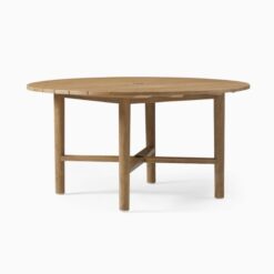 natural teak round dining table outdoor with 5 seater.